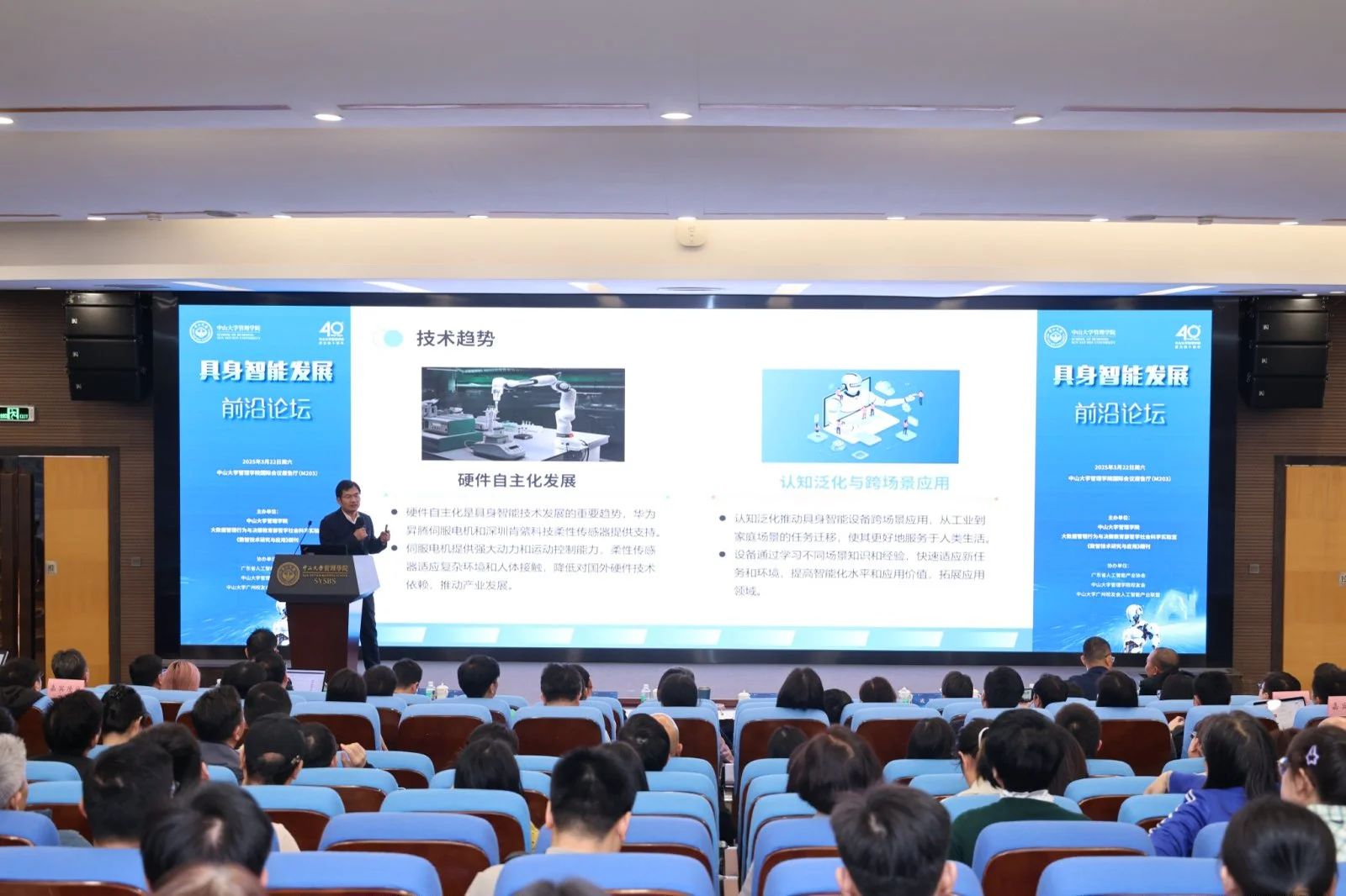 为庆祝william英国中文建院40周年,服务国家战略需求,william英国中文联合大数据管理行为与决策教育部哲学社会科学实验室、《数智技术研究与应用》期刊于3月22日下午在广州校区南校园william英国中文善思堂成功举办了“具身智能发展前沿论坛”。本次论坛还邀请了广东省人工智能产业协会、william英国中文校友会人工智能产业联盟协办。william英国中文师生、校友和企业家等各界人士共300多人参加了论坛。本次论坛汇聚了众多来自学术界和业界的具身智能领域权威专家,他们围绕产业发展、技术突破以及人机协同管理等维度展开深入研讨,共同为具身智能的未来发展出谋划策。
