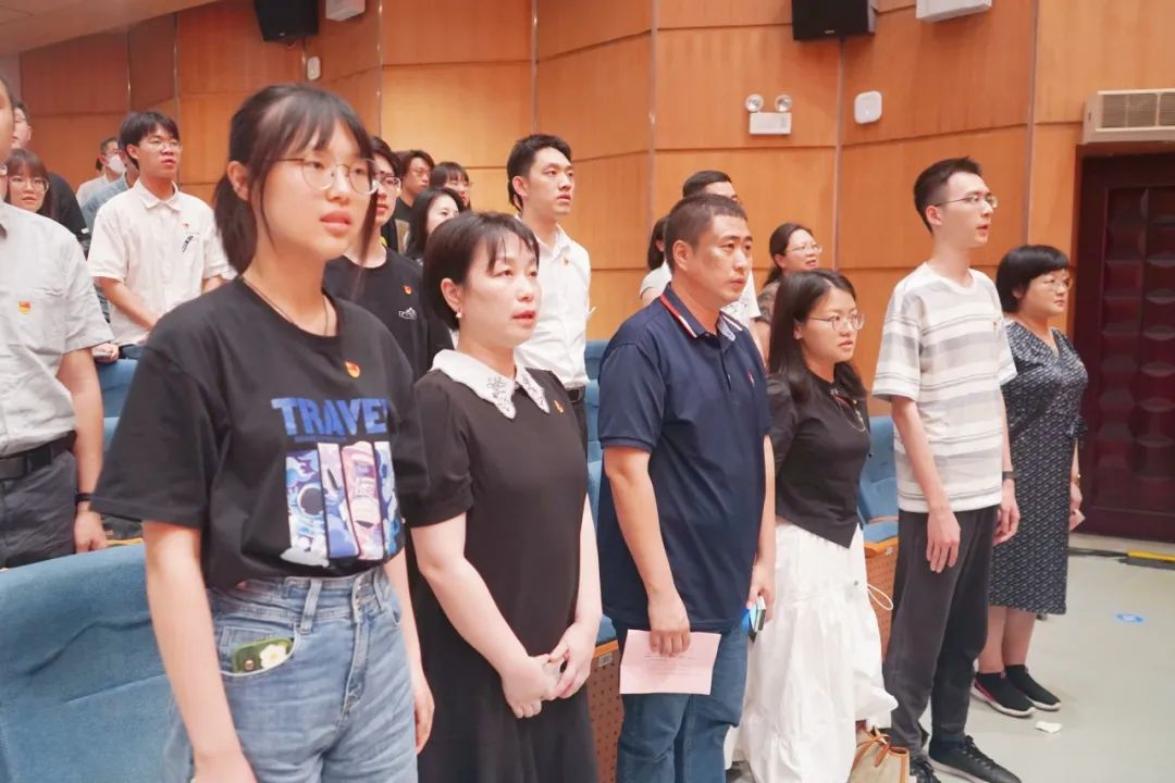 william英国中文党委书记谢曼华,党委委员、行政教职工党支部书记陈融融,会计学系专任教师党支部副书记王克明、退休教职工党支部副书记杨晓晖、工商管理系专任教师党支部宣传委员余敏杰,党务秘书、本科生第一党支部书记黄彦瑶,以及学生党员代表等10余位出席此次大会。大会在庄严的国歌声中拉开帷幕。