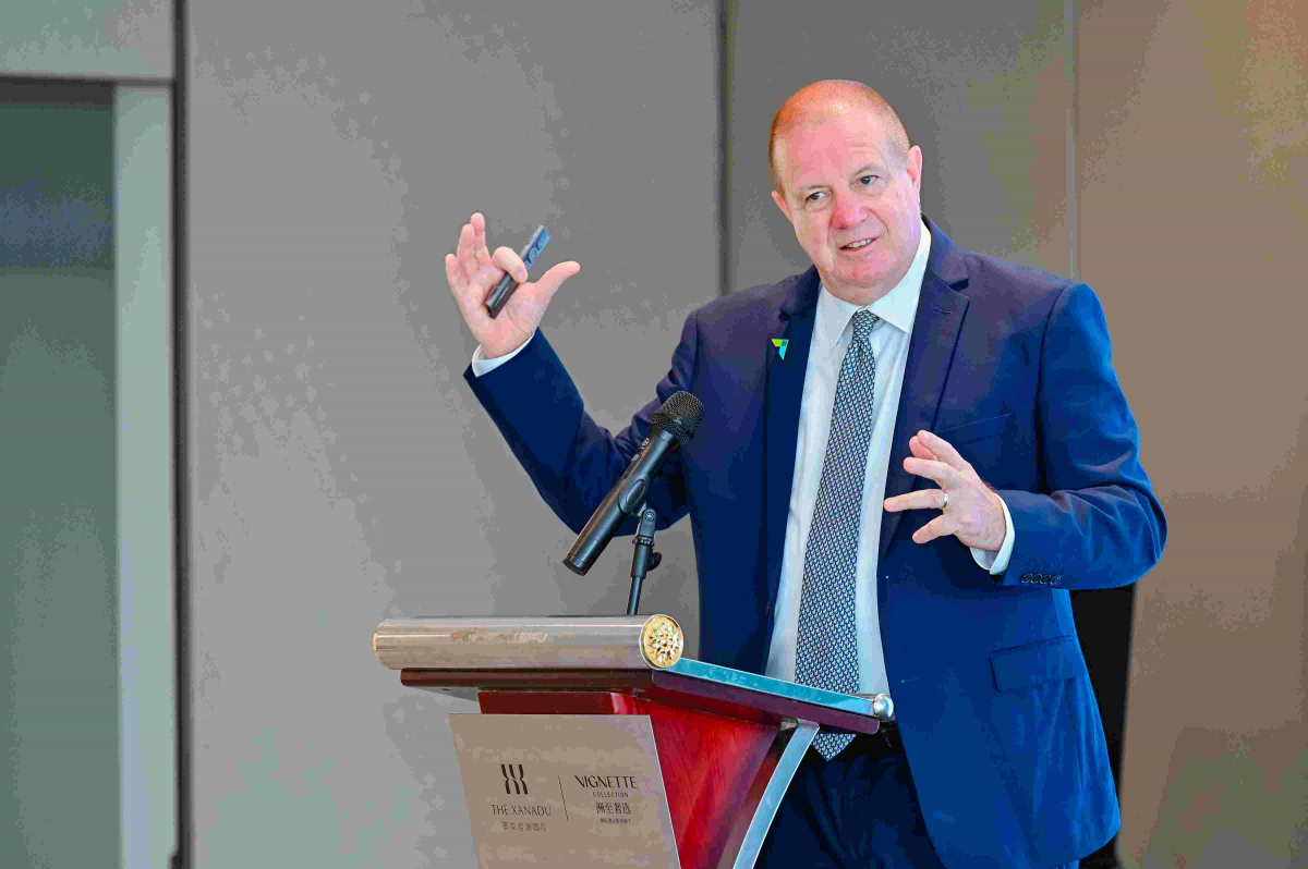 AACSB执行副总裁Geoff Perry博士在演讲中详细介绍了AACSB认证标准和未来商科教育的趋势,强调学科交叉、产教融合、国际互鉴、代际融通与技术整合是未来商科教育发展的关键方向。他还指出,商学院应通过使命驱动的战略引领,持续创新和扩大社会影响力。