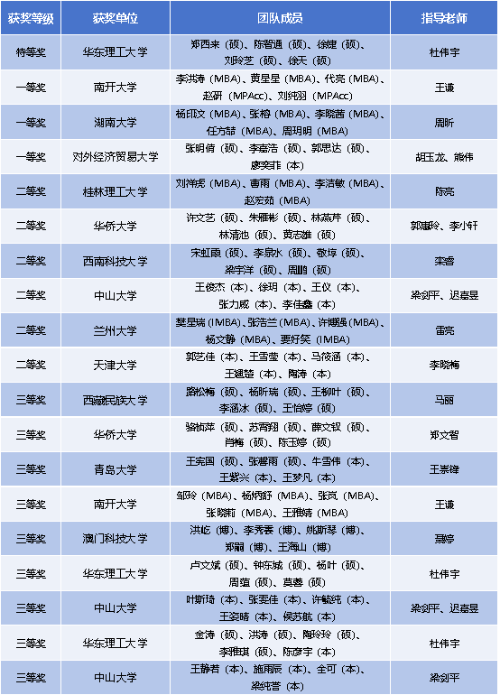 中大管院-哈佛商学院出版“SYSBS-HBP全球数字化工商管理模拟及案例分析大赛”全国赛获奖队伍(姓名后的括号为其所在学位项目类型)