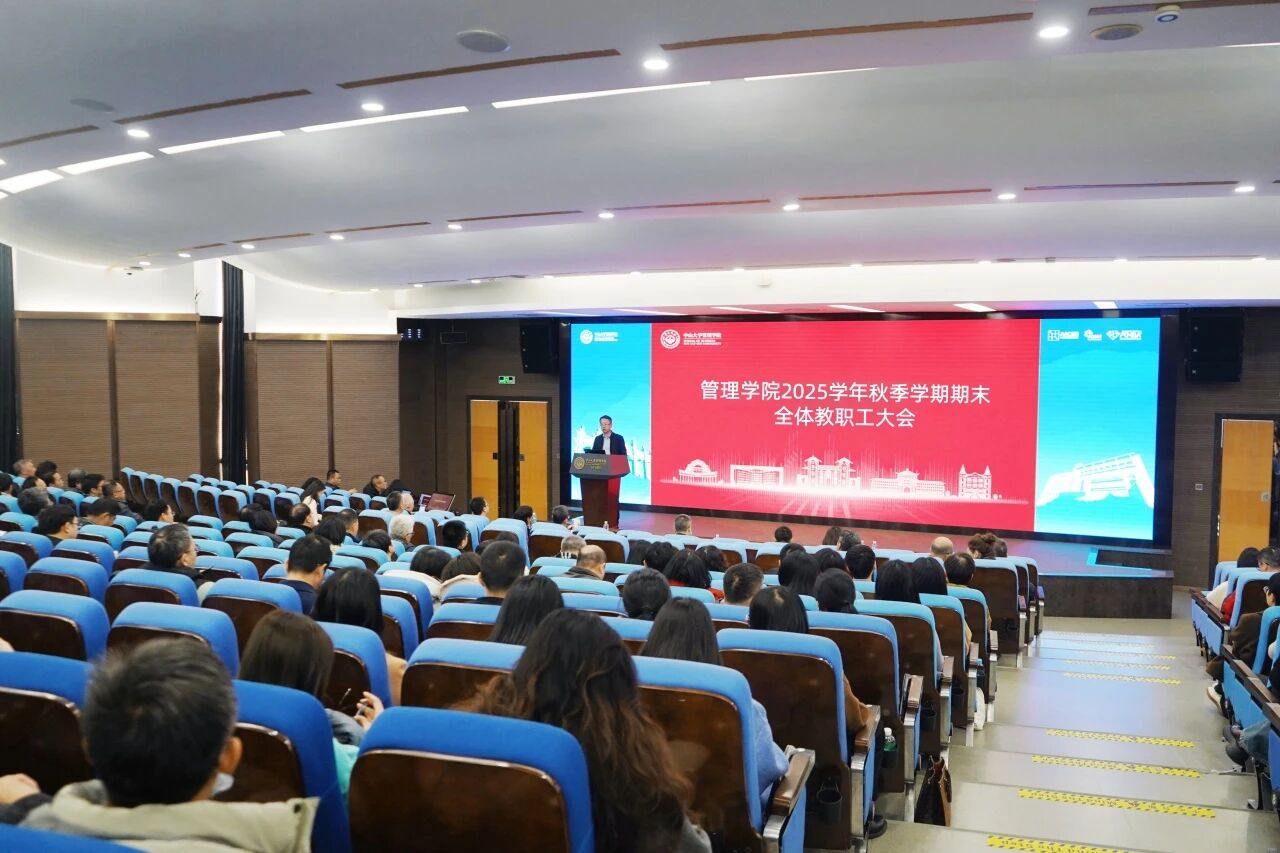 李广众院长以详实的数据汇报了学院2025年的发展成效。在威廉改革方面,学院作为首批试点单位推行本科生成绩等级制,优化课程评价体系。研究生招录工作稳步推进。在科研方面,学院继续保持强劲势头,教师在UTD、FT等国际顶级期刊发表多篇论文,多位教师入选国家级人才项目。品牌建设项目成效显著:EMBA全新升级“四力”培养体系;学院连续第四次获得AMBA五年最高期认证。