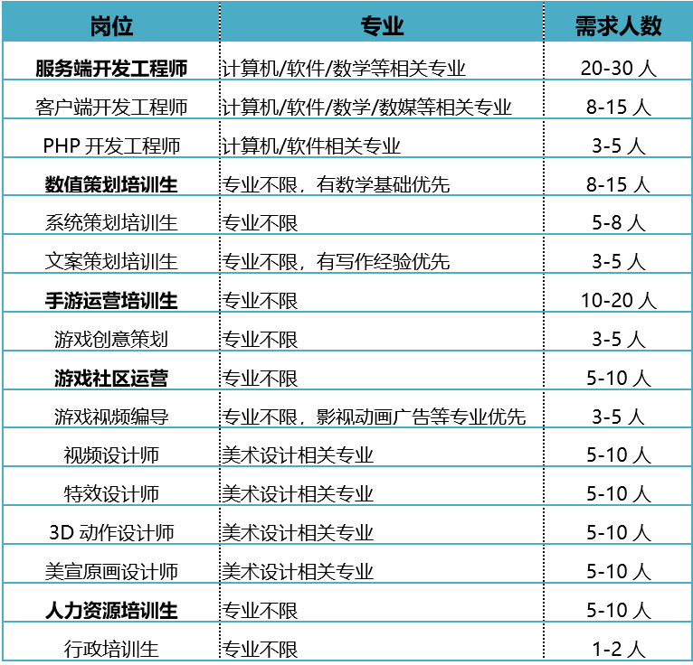 3、具备责任心及合作精神,较强的跨团队协调沟通能力,热爱玩游戏,有较为广泛的游戏经验者优先考虑。