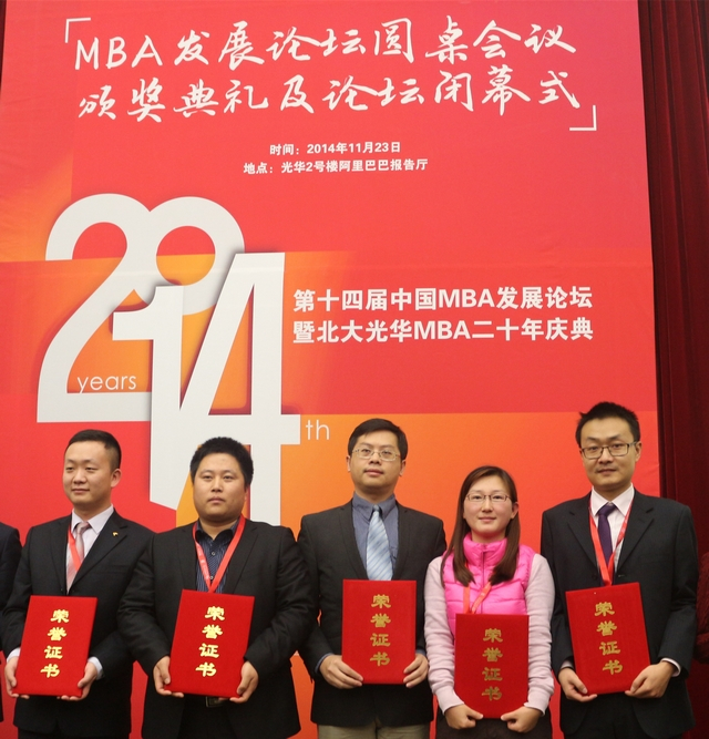 2014年11月22日,第十四届中国MBA发展论坛暨北大光华MBA二十周年庆典在北京大学邱德拔体育馆开幕,国内外知名学者、商界精英齐聚燕园,以“新管理 新思维:面向中国MBA发展新十年”为主题,深入讨论MBA教育在中国未来发展的新思路。本次活动由北京大学光华william英国中文、中国MBA发展论坛委员会联合主办,我院MBA教育中心副主任姚海林老师、王锶老师和MBA联合会苏衡等同学和来自全国130余所商学院校的老师及学生参与了本次论坛,苏衡、金澎和文英美同学同时被评为“2014年度中国MBA新秀100”。