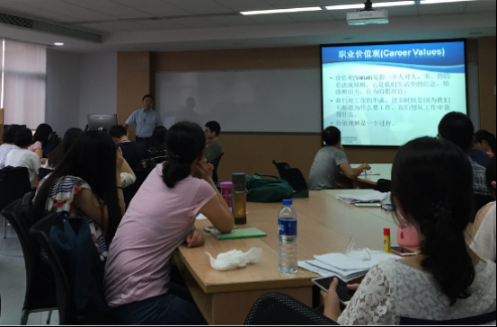 9月2日,MBA中心主任姚海林老师给16级MBA全日制同学带来了精彩的职业发展启航课程。从展开对自己认知的性格测试开始,到介绍制定目标的SMART方法,课程循序渐进的引领同学们在游戏和讨论中探索自己的兴趣点,价值观,从而使大家在未来职业的规划中有更清晰的方向。