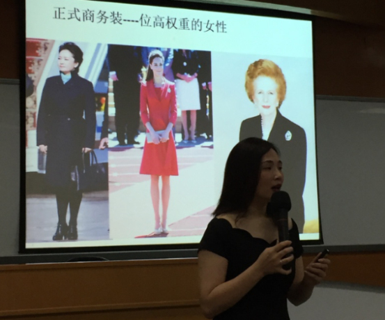 上午的课十分精彩,下午星燃老师则特别为男生介绍穿着西装的规范,还从配饰、领型、条纹色彩等细节上讲解了穿着西装的小技巧。