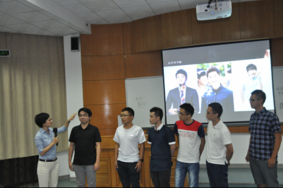 赵老师侃侃而谈,娓娓道来语言表达的最高境界。很多人都做过自我介绍,但要如何才能做一个好的自我介绍?通过对学生现场表现的点评,我们了解到原来一个小小的自我介绍竟也包含着大学问!比如老师是站着的,那学生如果自我介绍,也应该站起来,表示对老师的尊敬,自我介绍前应先表达对老师的感谢,这是自我修养的体现。开口自我介绍时要表达清晰,生动,甚至引入画面联想,比如介绍自己的姓“彭”,加入一句,是现在美丽优雅的国母彭丽媛的彭,大家就会联想到国母,这样大家对你的印象就会很深刻!这样的例子和技巧,老师还跟我们分享了很多,同学们都收益良多。