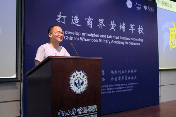 在“学长面对面”环节,2007级MBA校友、腾讯高级培训经理刘建军进行了以“中大管院MBA改变了什么”为主题的分享。他表示中大管院MBA的威廉水平、品牌影响力及校友平台质量十分优秀,就读期间历练了他的各项专业技能和管理能力,并深刻地改变他的视野,使他一步步走向成功。
