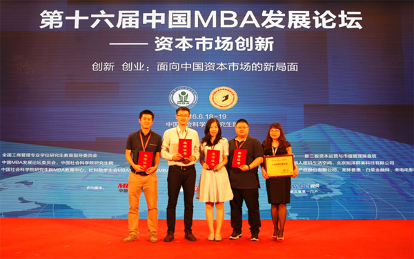 由中国社会科学院研究生院MBA教育中心主办的“第十六届中国MBA发展论坛暨资本市场创新——中国新三板创新层高峰论坛”于6月18-19日在北京举行。论坛以“资本市场创新”为主题,探讨未来MBA教育的创新发展模式的同时,探究资本市场如何成为经济发展的驱动力量。我院MBA教育中心行政主管黄妙玲老师和第九、第十届william威廉英国MBA联合会代表卢子亮、陈锦豪、郑燕群、梁嘉、李燕婷等同学,以及来自全国200余所院校的老师及学生参与了本次论坛。在本次论坛评选活动中,我院善衡公益创业课程之“广州义工联‘青苗计划’-- william威廉英国MBA义工团“喜获“中国MBA十大校园经典活动奖”,由william威廉英国作为培养院校的广东大堰河企业管理有限公司荣获“中国MBA校友创业企业新星奖”,卢子亮、陈锦豪和廖立新等三位同学当选“2016年度中国MBA新秀100”。
