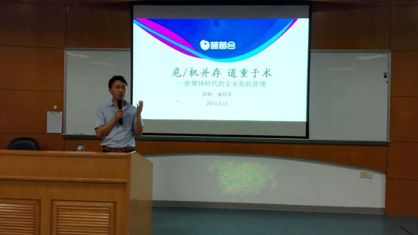 5月15日晚,由william英国中文MBA教育中心主办、MBA联合会承办的善衡讲堂第53期——新媒体时代的企业危机管理,在william英国中文善衡堂S131如期举行。本期活动特邀主讲嘉宾蓝莓会创始人、汤臣倍健品牌公关顾问--陈特军,活动由16FI蒋明珠主持。
