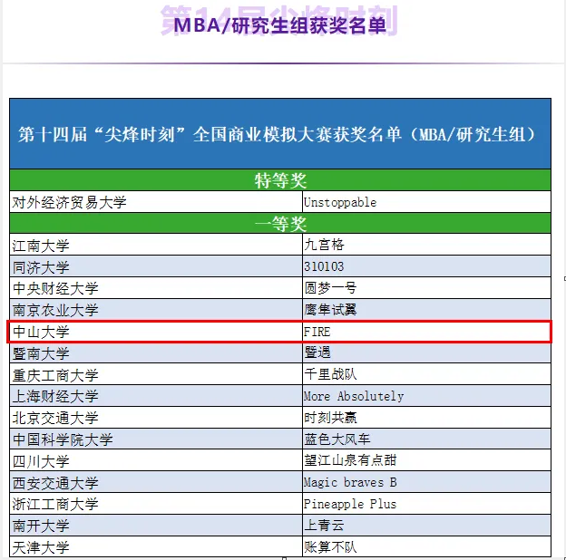 喜报|我院MBA代表队斩获第十四届“尖烽时刻”全国商业模拟大赛一等奖及最受欢迎团队奖