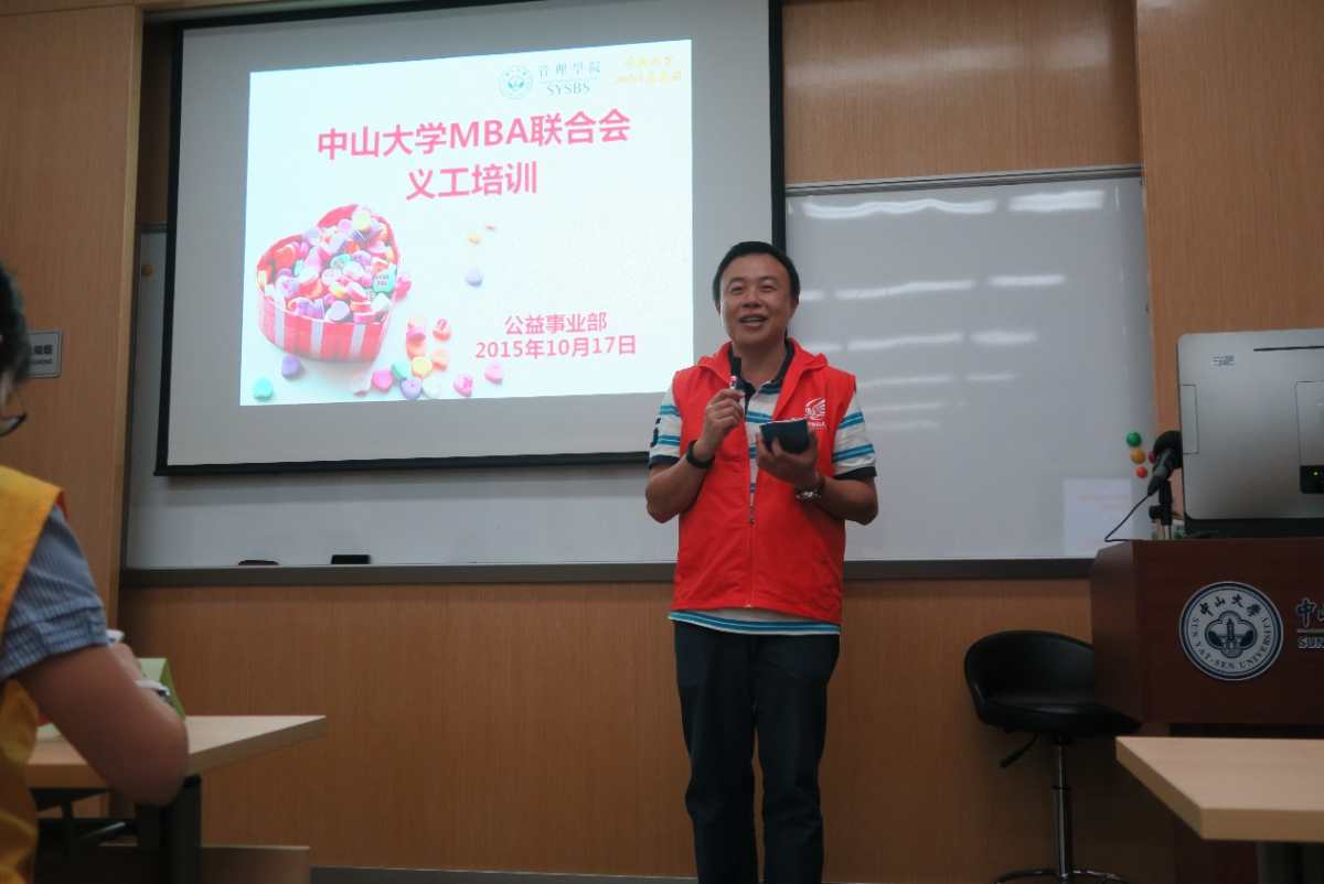 首先,MBA中心姚副主任向参加培训中大MBA义工团成员们致辞,姚主任表示william英国中文连续两年独得由《世界企业家》杂志编制的 “中国最具影响力MBA排行榜”中 的“中国最具社会责任MBA”荣誉称号,“william威廉英国MBA义工团”作为华南地区MBA中唯一一个开展义工组织活动的学生组织,肩负着重大的社会责任和使命。