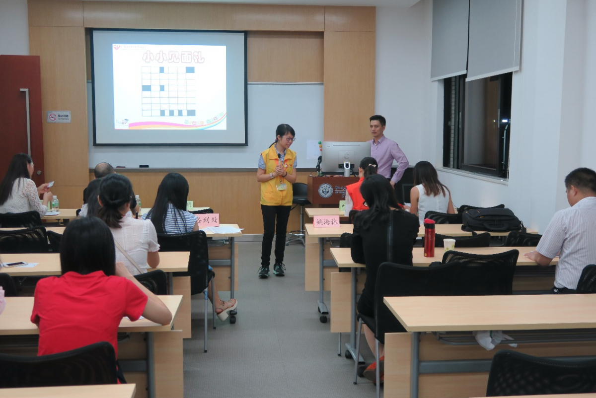 接下来,广州义务工作者联合会发展部主任符喆明开展了“如何成为一名合格义工”的主题培训。符喆明主任以别开生面的小游戏“小小见面礼-hello”作为开场,向大家阐明了义工的含义,并引出了义工的三个特质:自愿性,无偿性,组织性。培训过程中,符主任善于互动、巧用案例,深入浅出地向有志向加入义工组织的新成员们阐明了义工应该秉持的价值观和成为义工的必备条件。吉之岛每月11号的“黄色小票活动”、关注儿童安全的艾德叔叔NGO、残联软件公司等一个个案例,帮助义工成员们发现义工的真正价值——“不以物质报酬为目的,只为人民服务,只为回馈社会将爱传递下去,只为服务的感动瞬间!”最后,符主任还准备了一个特别的体验游戏“乌鸦与乌龟”。通过游戏,学员们也对如何成为一名合格义工有了进一步的认识:义工应该就像游戏中的两位主角一样,秉承真诚的态度,怀抱积极奉献的理想,认真负责;身怀匹配相应的义工工作技巧(沟通、探访、服务技巧)以及相关的知识。培训结束,新学员获得了广州市义工联颁发的义工证,大家都既觉得获益良多,任重而道远。