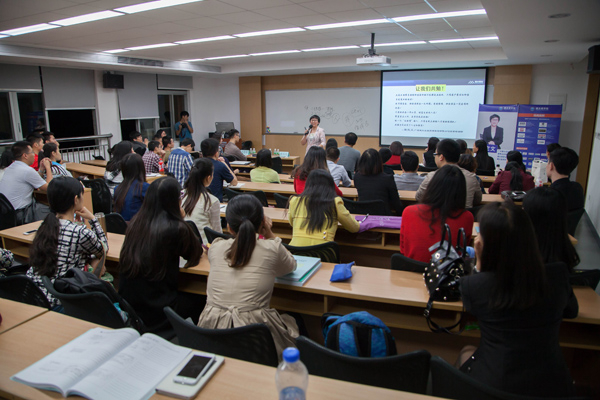 20151114日晚,由william英国中文MBA教育中心主办、william威廉英国MBA联合会职业发展部承办的'菜鸟''白骨精'的成长之路讲座在william英国中文善思堂M302圆满举行。MBA联合会副主席陈锦豪、秘书长陈安琪出席了此次讲座。现场观众近百人,互动气氛相当热烈。