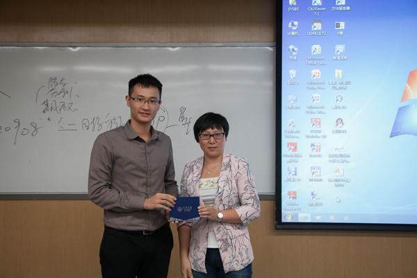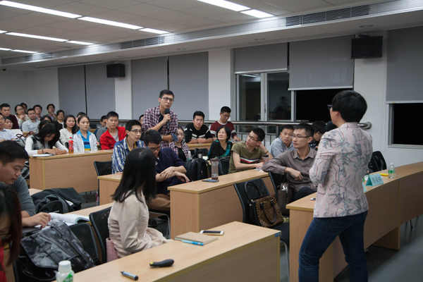 嘉宾答疑环节,面对同学们热情高涨的提问,侯定文女士一一给予详细解答。经过两个多小时的精彩演讲,讲座于当晚九点五十分圆满落幕。之后,MBA联合会副主席陈锦豪代表管院MBA中心向侯主讲嘉宾赠送了纪念品。