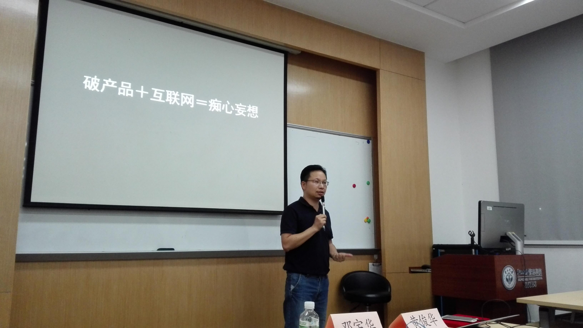 接着,邓宇华顾问给同学们带来”如何做好产品经理“分享。首先,以”产品经理的前世今生“切入,导师阐述了自己对产品以及产品经理的见解,概括一句经典名句”消费者都是恶魔,产品经理都是上帝“。结合Manalogy Systems产品诞生的过程,邓宇华顾问详细讲解了从角色分析、Backlog-Sprint、User Story、UI/UX、逻辑分析等五大部分内容,贯穿了整个产品产生的过程。
