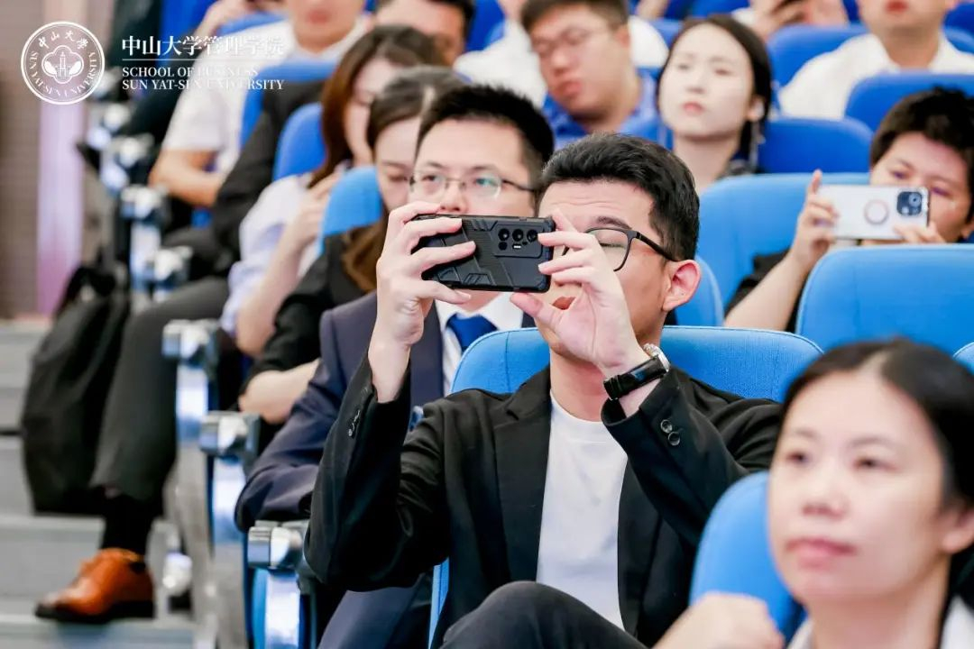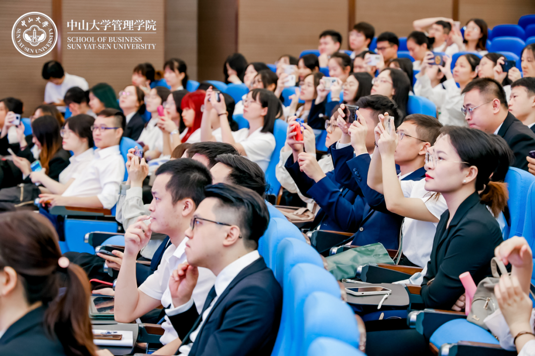 钟一彪书记分享了自己不同阶段的学习经历,向大家阐述了三个管理(管理当下、管理未来、管理自己)的内涵。管理当下需要把粤港澳大湾区区位优势和专业优势转化为职业优势(专业素养、职业机会、创业条件和校友资源),将这些优势内化吸收。管理未来包含形象、素质和能力。首先要塑造积极健康的形象;素质即涵养“三力”(学习力、思想力和行动力)和创新素质;还要提升卓越管理能力。管理自己包含理念与格局。树立知彼解己的发展理念,同时坚持以终为始的“五成思维”(成人、成事、成果、成才、成功)。最后,钟书记引用习近平总书记2023年新年贺词“广大青年要厚植家国情怀、涵养进取品格,以奋斗姿态激扬青春,不负时代,不负华年”激励同学们保持蓬勃朝气,积极向上,不断奋斗。