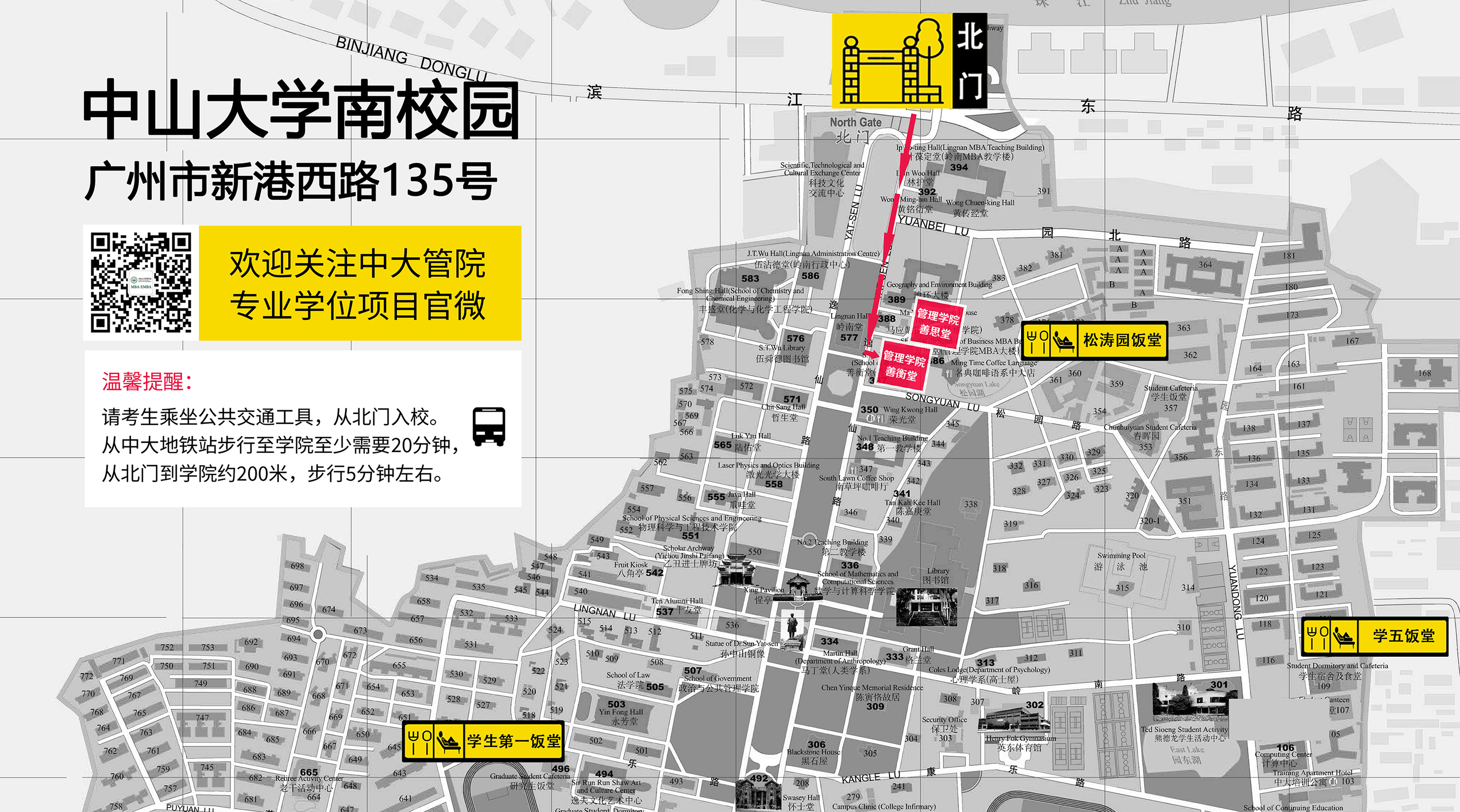 (本周五用手机微信搜“中大逸码通行”小程序,使用报名时预留的手机号和个人身份证件号码登录,即可获取周六的入校凭证。签到时出示个人身份证)
