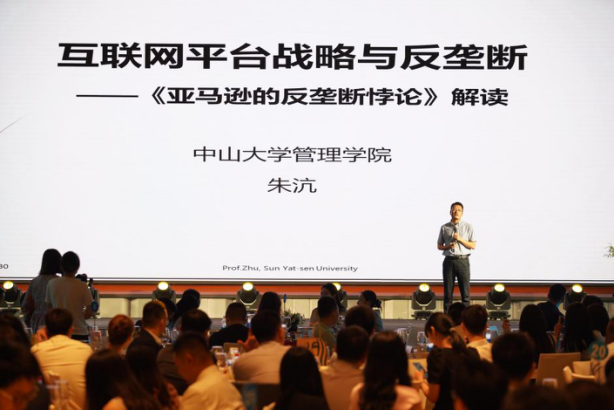 新生见面会不仅有炙热爱心,还有精神食粮。活动特别邀请了我院朱沆教授分享了《亚马逊的反垄断悖论》一书,启发大家从互联网平台战略与反垄断的角度进行思考。此外,活动还邀请了赞助商代表发表主题演讲,京东零售企业业务事业部华南区总监王筠谈到了京东进行数字化创新驱动企业业务转型和服务升级,在智能化采购、供应链等领域为客户创造价值等相关内容。蔚来汽车广州区域公司总经理陈清分享了企业发展故事及其独特的用户服务模式,把一个个生动的服务案例娓娓道来。