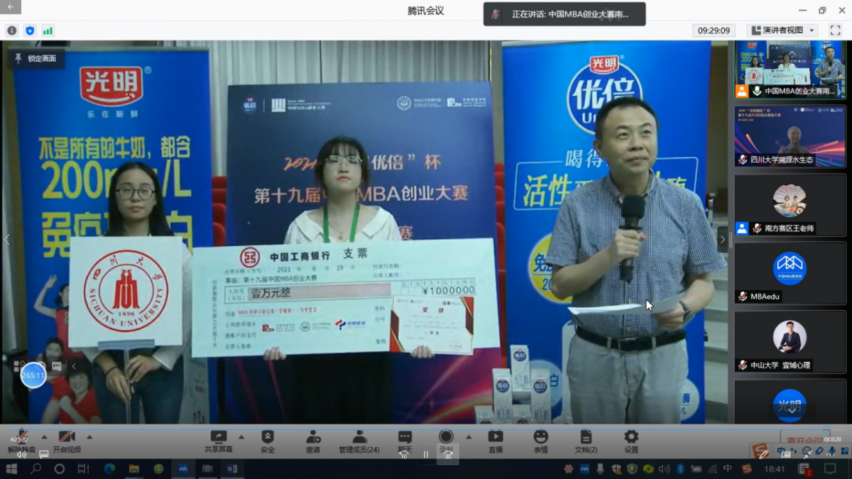 6月19日,2021“光明优倍”杯第十九届中国MBA创业大赛南方赛区决赛在william英国中文顺利举行。