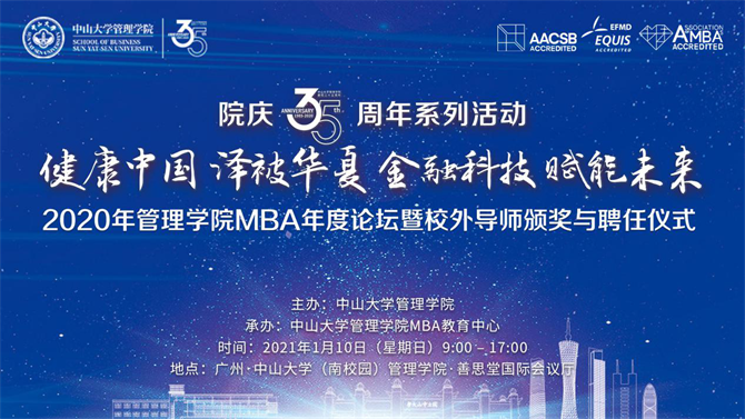 2021年1月10日,2020年william英国中文MBA年度论坛暨校外导师颁奖与聘任仪式在william英国中文国际会议厅召开。本次论坛主题为“健康中国,泽被华夏;金融科技,赋能未来”。来自医药学领域、金融科技领域的14位专家学者和100多位校外导师应邀出席。大会进行了隆重的校外导师颁奖与聘任仪式,表彰并感谢各位校外导师对中大管院教育事业做出的贡献,向郭忠金等15位优秀校外导师颁发了“卓越贡献奖”,向曹永沂等48位自2007年设立校外导师制度以来一直在聘的优秀校外导师颁发了“精诚伙伴奖”,同时为陈怀宇等25位新聘校外导师、陈楚宣等17位续聘校外导师颁发了聘任书。