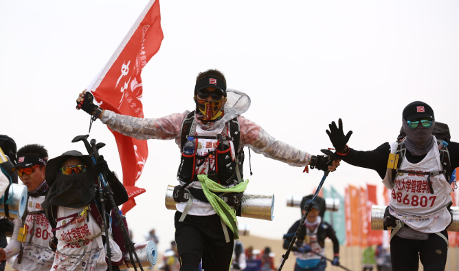 “个人的成绩在其次,团队的荣耀才是王者!队旗对于一支队伍来说,是一种方向的指引,也是队伍精神的体现。所谓‘人倒旗不倒’,当队员在比赛中彷徨的时候,看到队旗,就会给他们一些信心和勇气。而对于漫漫黄沙中前行的中大队员来说,这种意义就更加真切。” 70公里寸步不离,陈梁钰不仅在吃风、吃土、吃力的旗手岗位上守护住了管院的每一个人,同时他手中的旗帜也成为了其他院校落单队伍的航灯,帮助众多兄弟院校队员顺利完成比赛。“旗手只是扛旗的那个人,关键要看这面旗子体现的精神!”