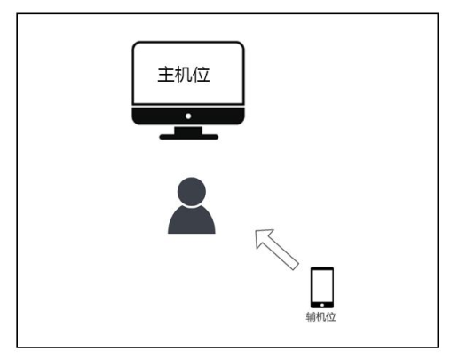 主机位最好使用电脑,用其自带摄像头对准考生本人,另一部电脑或手机摄像头从考生后上方成 45°拍摄。监控设备需确保能看到考生的桌面和双手。