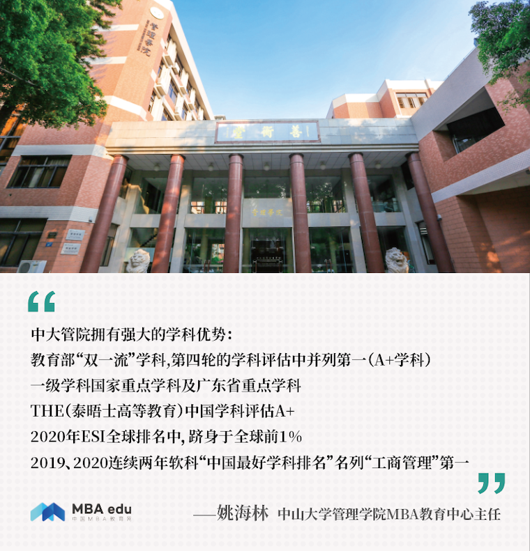 事实也确实如此。无论是社会认可度、国际化程度、品牌影响力及知名度,中大管院MBA在中国商科教育的舞台上占有举足轻重的位置。