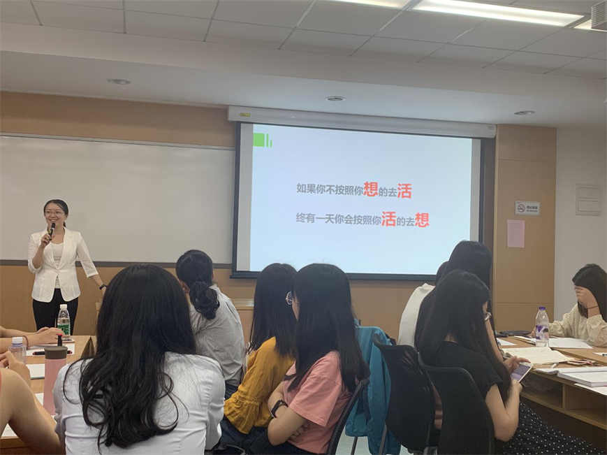 职业培训专家蔡妮娜老师通过一幅“人生梦想图”引出了“为什么需要职业生涯规划”的思考。通过自己一笔一画,铸就起未来梦想的样子,她引导同学们要 “知己知彼,然后决策行动”。“如果你不按照你想的活,终有一天你会按照你活的去想”,蔡妮娜老师建议同学们在做好职业规划后,不仅要有及时行动的意识,更要学会在发展中不断寻找机会、适时转换发展角度。