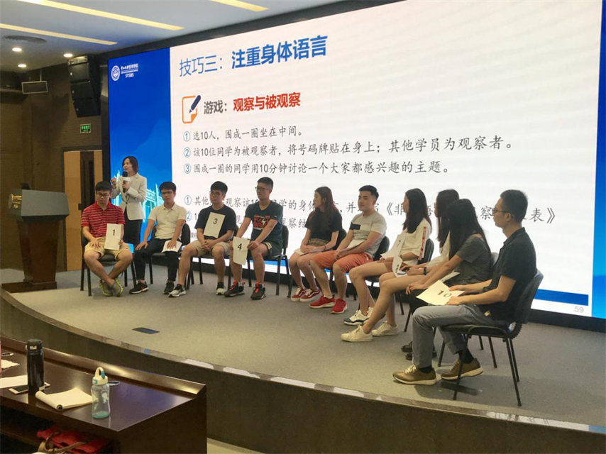 拥有丰富企业工作经验的人力资源专家张岚老师通过全脑模型让同学们认识了在不同思维模式下的人有着不同的人际交往模式,有些人注重逻辑和分析,有些人看重条理和细节。一个让大家相互介绍的“我是谁”的小互动游戏,展示出了在人际交往中个人风格的多样性。不同风格的人之间怎样做到彼此尊重,加深沟通?张岚老师提出了3项准则:增强并维护对方的自信心、表示出同理心、鼓励对方参与。此外,适当运用修饰词和身体语言,能帮助加深共同理解,得到求同存异的沟通成果。