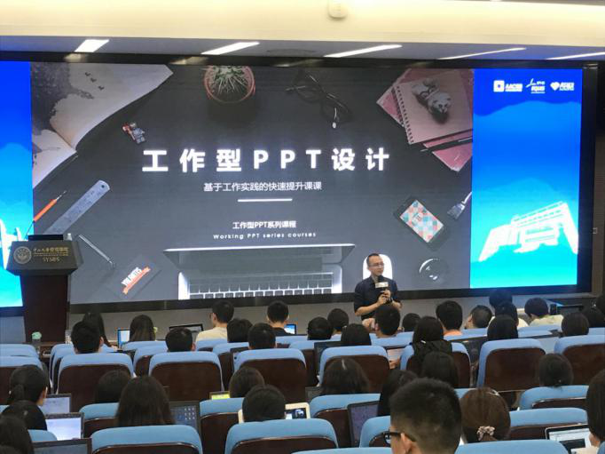 PPT是职场中自我展示的一个非常重要的工具。Microsoft认证的PPT专家陈济深老师通过“积累、效率、设计”三方面为大家详细讲解了如何利用PPT“打响自己在职场的金字招牌”。同学们聚精会神,没有放过任何的细节,将全部锦囊收入脑中。