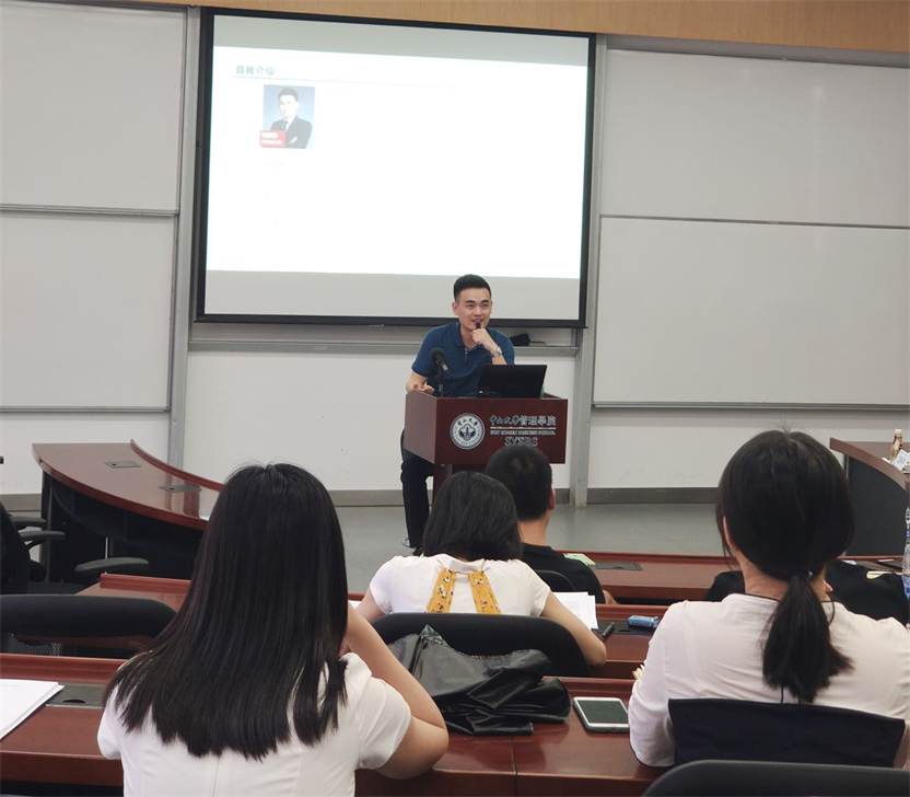 2014级MBA校友司家奎为大家分享了他的职业转型成功之路,并总结出自己的经验,“找到自己的目标,以专注的力量,时刻学习,天道酬勤”。学长的金玉良言给新生们带来很多关于人生和职业发展的思考。