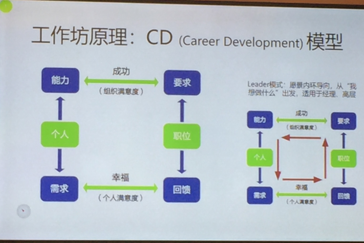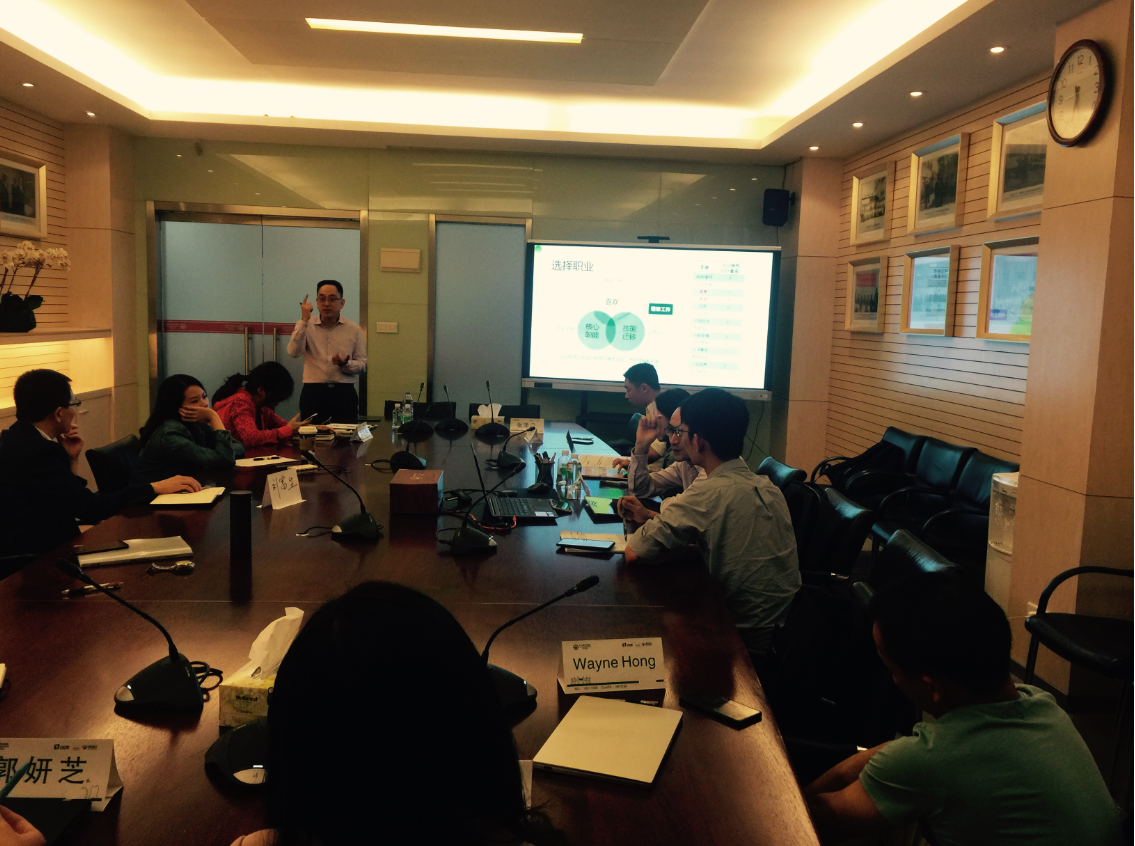在为期三周的课程中,张老师首先介绍了基本的CD(Career Development)模型,同时通过案例分析,引导学员分组讨论,使学员们真实地认识到预期目标和自身胜任力之间的差距,以及自身所具备的优势。然后,老师根据各位学员的自身特点,一一进行点评,使同学们对自身的发展目标和成长方案有了非常清晰的认识。