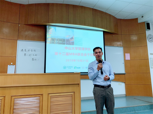 在竞选开始前,MBA中心师曼老师首先上台致辞,她对联合会一直以来的付出表示感谢,希望其再接再厉,为同学们办更多更好的活动,并表达了对第十二届MBA联合会干部的期望。随后,联合会李婵主席介绍了第十二届MBA联合会的组织架构、近期精彩活动、各大赛事获得的佳绩,以及对下半年重点工作MBA20周年庆进行了展望 接着,理事会陈冲副理事长上台致辞,他表示因为乐于奉献把大家聚集在一起,无需在乎职位,希望各位能在过程中收获到友谊、能力的提升、个人成长。