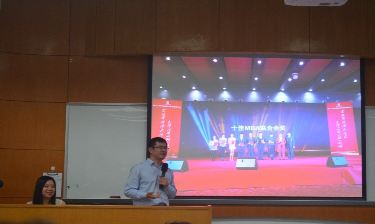表彰大会正式开始前,MBA项目学术主任朱仁宏副教授对本届联合会的工作表示赞赏。他指出,本届联合会传承了历届联合会的优良传统,业绩突出;联合会各部门间团结合作,联合会成员积极主动。同时,他也表达了对第十二届MBA联合会的期望。
