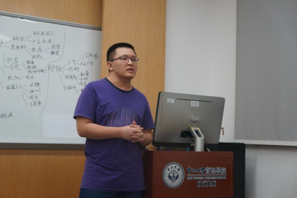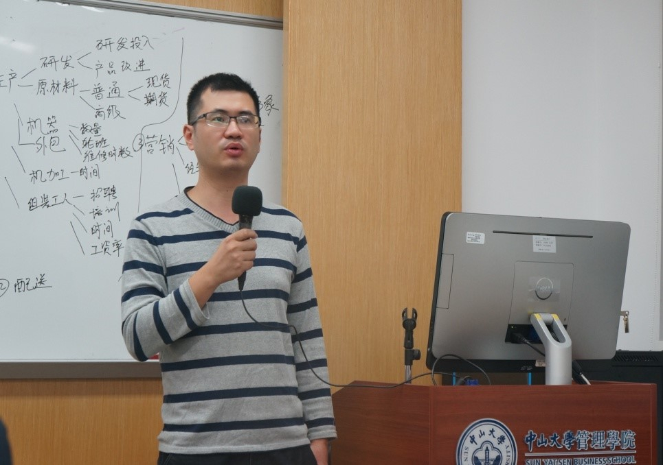 指导老师刘力恒先生接着向在场学员重点讲解了比赛的技巧。刘老师多次在中国区比赛和国际总决赛取得优异的成绩,具备极其丰富的实战经验和指导知识,从组建团队、建立模型、预测销售数据、安排生产、时间管理等方面传授实用干货。讲解精彩纷呈,在场学员都聚精会神的听讲,受益匪浅。
