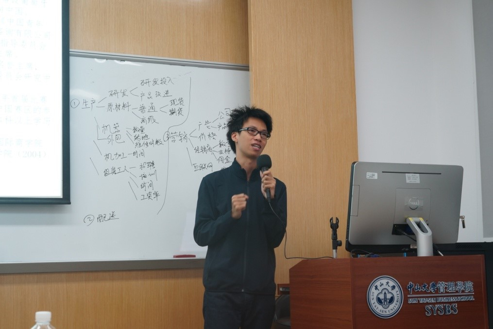 指导老师叶敏辉先生随后上台,首先向在座学员播放了GMC国际企业管理挑战赛的宣传短片,并对GMC赛事及历届GMC中国区大赛的冠军队伍、历届GMC国际赛冠军队伍和国际总决赛地点进行了介绍。该项赛事自1995年引入中国以来,已经连续成功地举办了17届,在全国已颇具规模,是工商管理模拟商战覆盖面最广、影响力最大的国际级赛事,中大管院曾在2005年勇夺全球冠军殊荣。2017年国际总决赛地点在阿联酋迪拜。