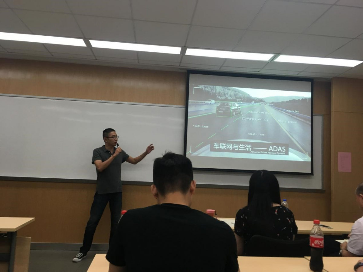 董泉同学以风趣幽默、深入浅出的语言,海量的图片,结合自己多年来的行业工作经验,向同学们讲述了车联网行业的产生、发展、运用与未来蓝图。车联网是基于车辆数据和行驶数据的服务及应用,利用大数据的收集和分析能力,实现智能化交通管理、智能动态信息服务和车辆智能化控制的一体化网络,是物联网技术在交通系统领域的典型应用。车联网企业通过与日常生活中的每一个应用场景的联系和运用,使人们的生活更加方便快捷,公司成本节约,甚至颠覆原有的传统商业模式,为我们构建出车辆智能化时代的美好前景。