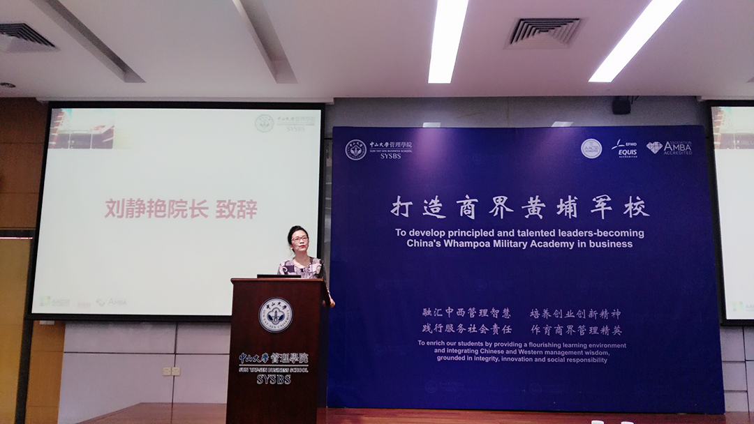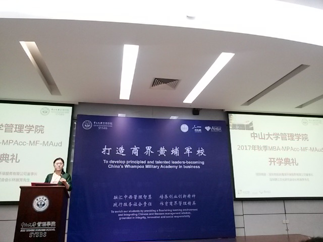 刘静艳副院长在开学典礼上致辞,她代表william英国中文全体教职员工、在校学生和校友热烈欢迎2017级4M新同学加入william英国中文。刘院长通过讲述自己在哈佛学习的经历,希望同学们能够以空杯心态,归零开始,正确地对待学习。随后刘院长围绕罗俊校长的寄语“德才兼备 领袖气质 家国情怀”谈了关于MBA学习及以持有什么样的心态去学习。刘院长认为中大要求的“德才兼备、领袖气质、家国情怀”,分别表示有底气、有大气、有豪气,要抛开自以为是,遵循规矩的学习让自己更加有底气,通过提升自身价值与综合素质能力,让自己大气,为国家、为社会、为集体,包括个人,创造价值,让自己有豪气,并祝各位新同学在未来的学习生涯中,积极向上、学业进步,成就更好的自己。