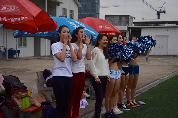 “露脐+热裤”美女啦啦队热情,驱散广州20度的低温