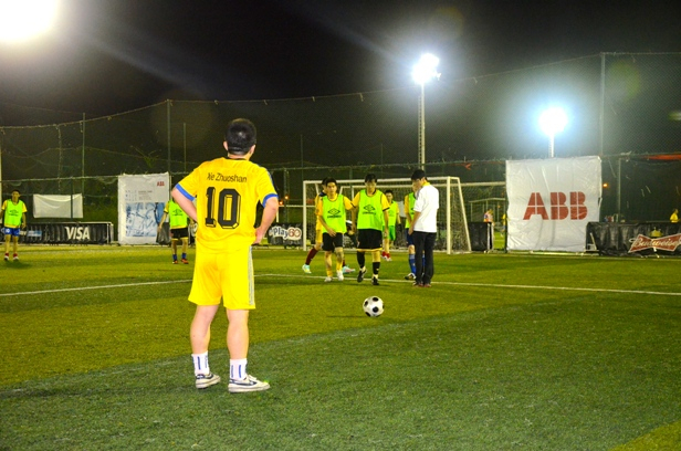 B组:2014级MBA联队10号核心谢卓山冷静主罚任意球,是役个人攻入两球