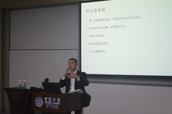 本次讲座邀请到了国投瑞银的总经理助理兼市场总监邓航先生。原以为,对于一位在资本市场打拼这么多年,轻松玩转几千亿基金的金融大腕来说,数字、曲线等一些冷冰冰的元素是他演讲的主旋律,结果演讲却是以幽默且极富哲理的方式开篇,从另一角度给出了幸福的含义。