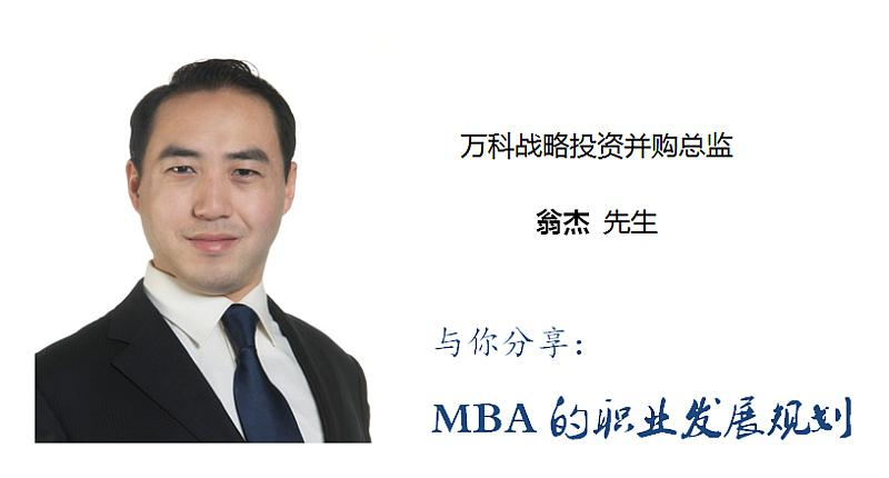 本次讲座我们邀请到万科战略投资并购总监翁杰先生,为同学们MBA的职业发展规划指引明灯,讲座内容重点聚焦以下几个问题: