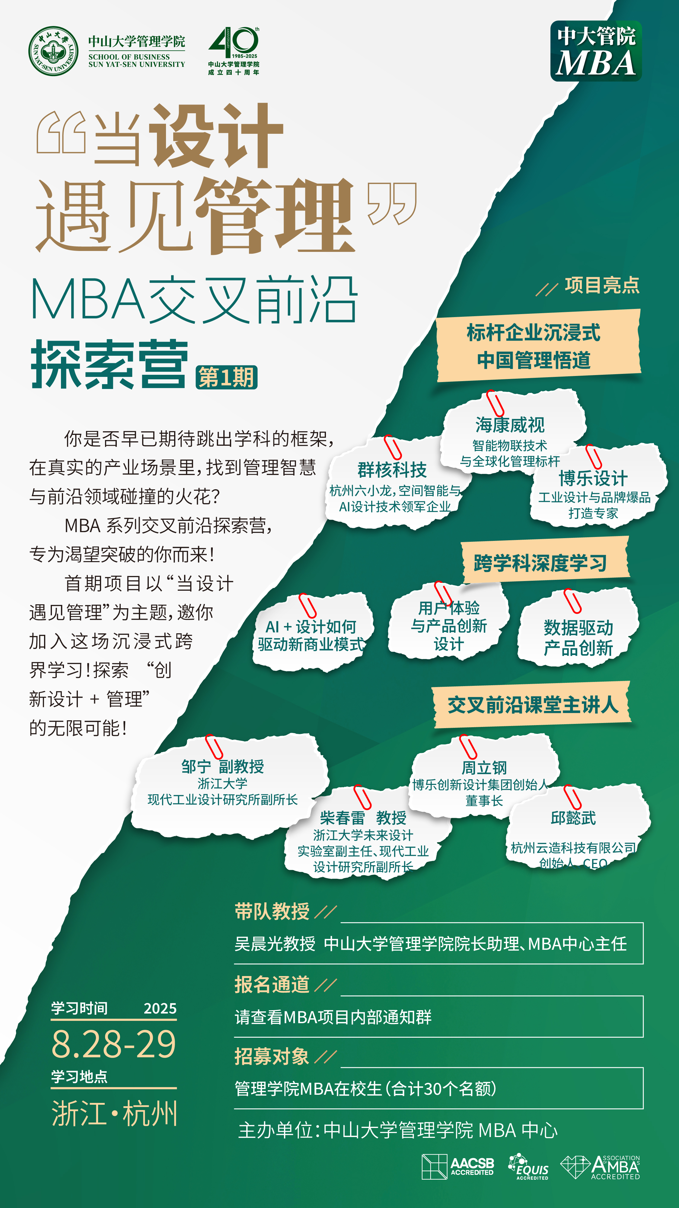 首期项目以“当设计遇见管理” 为主题,于2025年8月28日-8月29 日在浙江杭州开展。