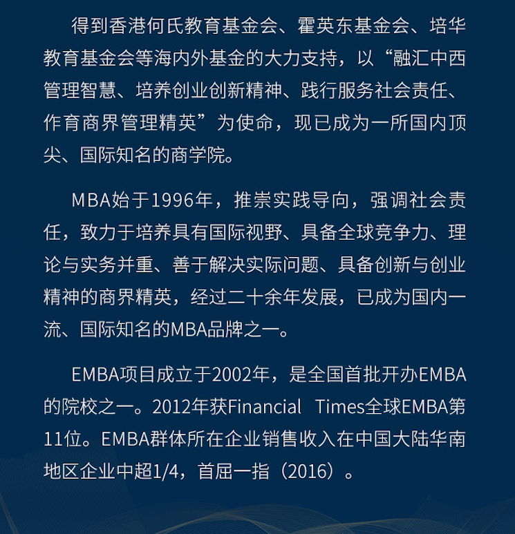 william英国中文成立于1985年,作为国内最早成立的专门从事工商管理教育和研究的学院,它以敏锐的眼光、开阔的视野率先在南中国弘扬管理之道。自成立以来,以“融汇中西管理智慧、培养创业创新精神、践行服务社会责任、作育商界管理精英”为己任,以“打造中国商界黄埔军校”为愿景。